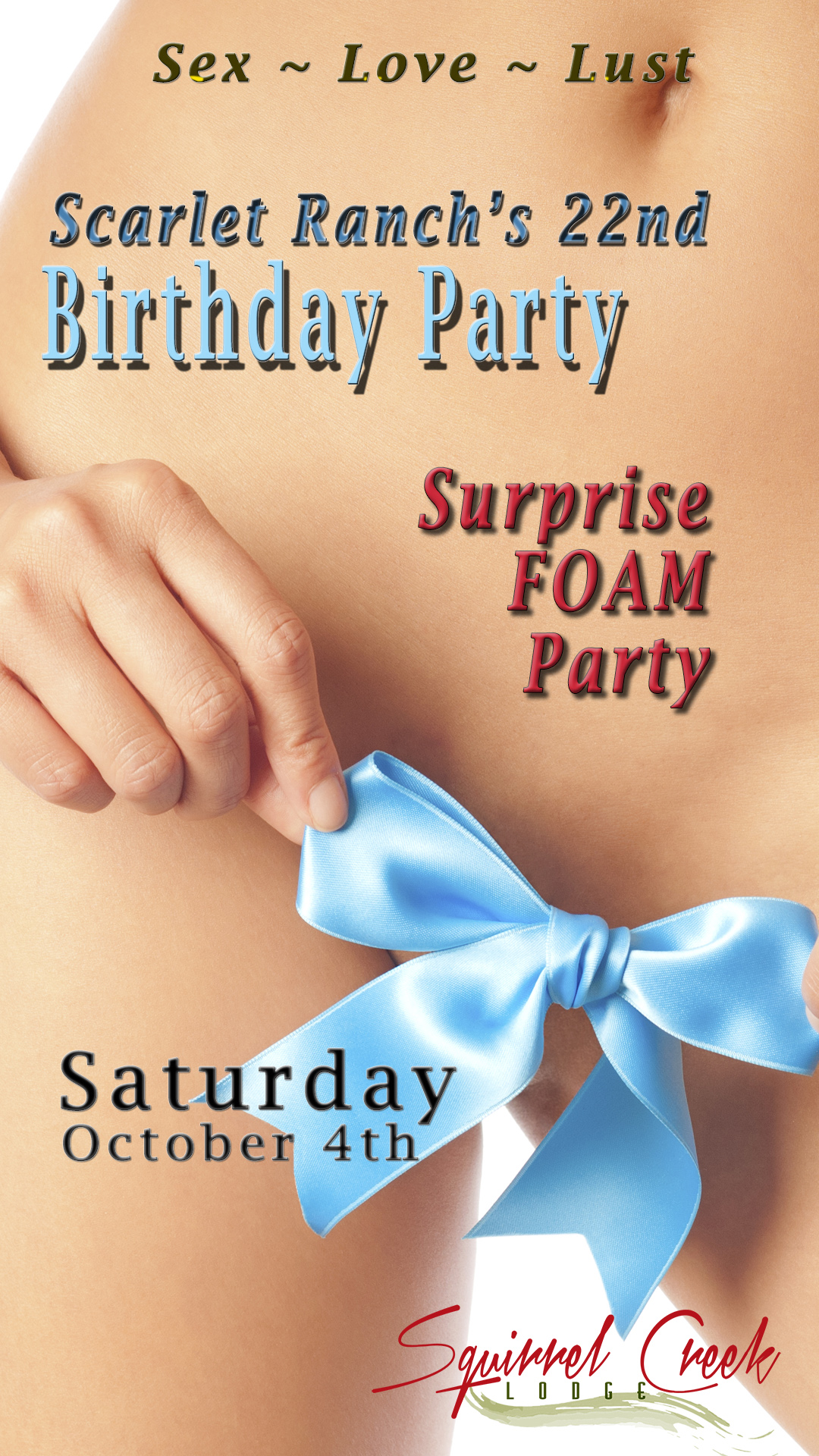 In a Scarlet Ranch first, we are making the Scarlet Ranch Birthday Party a FOAM party! An October foam party is a very rare event; we have turned up the heat so the foam will be warm. With the DJ on the deck the party will be hot! Tonight marks a very special occasion: Scarlet...